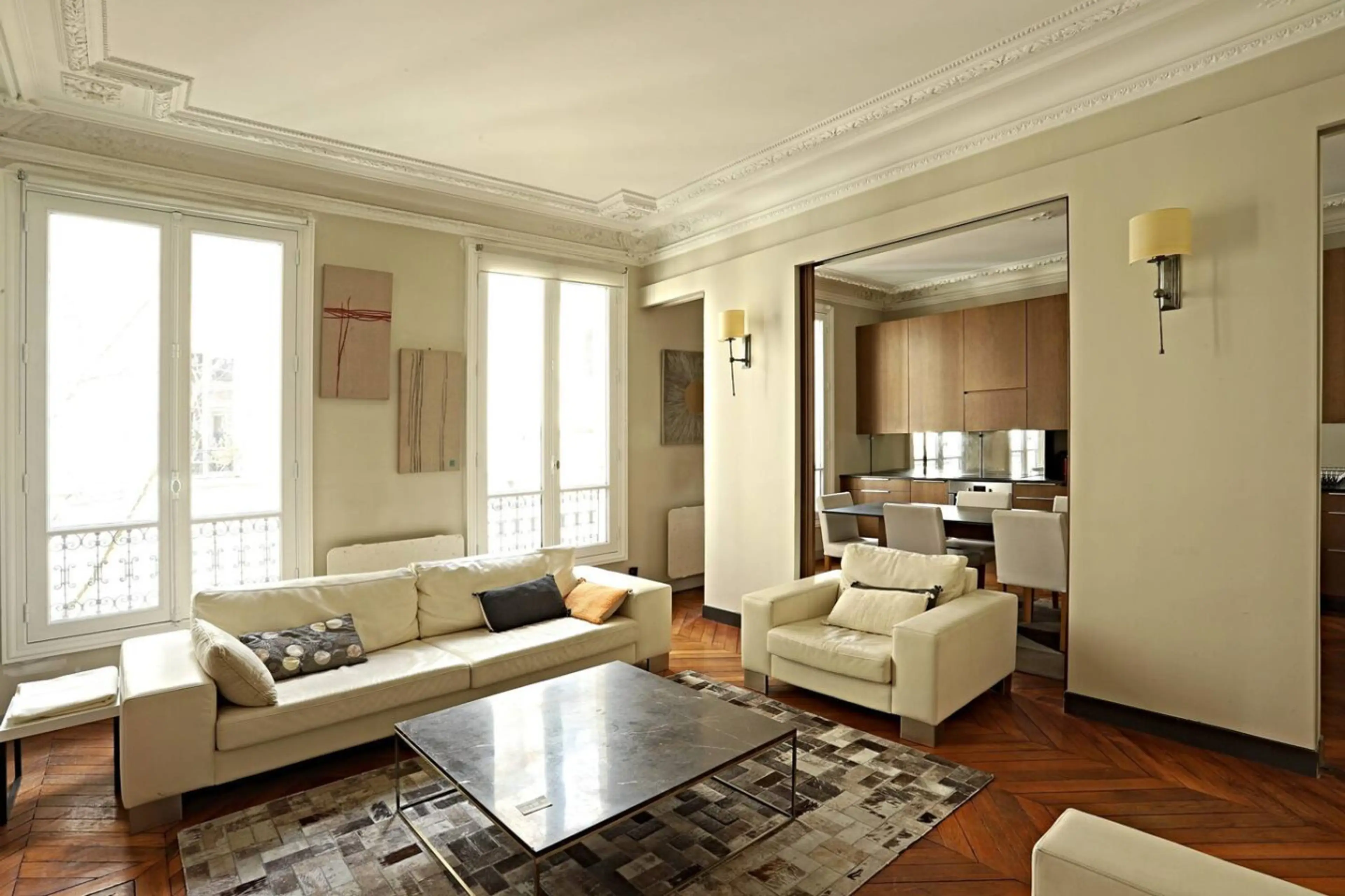 Appartement familial spacieux et très calme sur cour, situé au 3ᵉ étage avec ascenseur. Il dispose de 3 chambres (2 avec lit double et dressing, 1 avec lit superposé), d’un grand séjour lumineux ouvert sur une cuisine et salle à manger entièrement équipées. Vous trouverez également une buanderie ave...